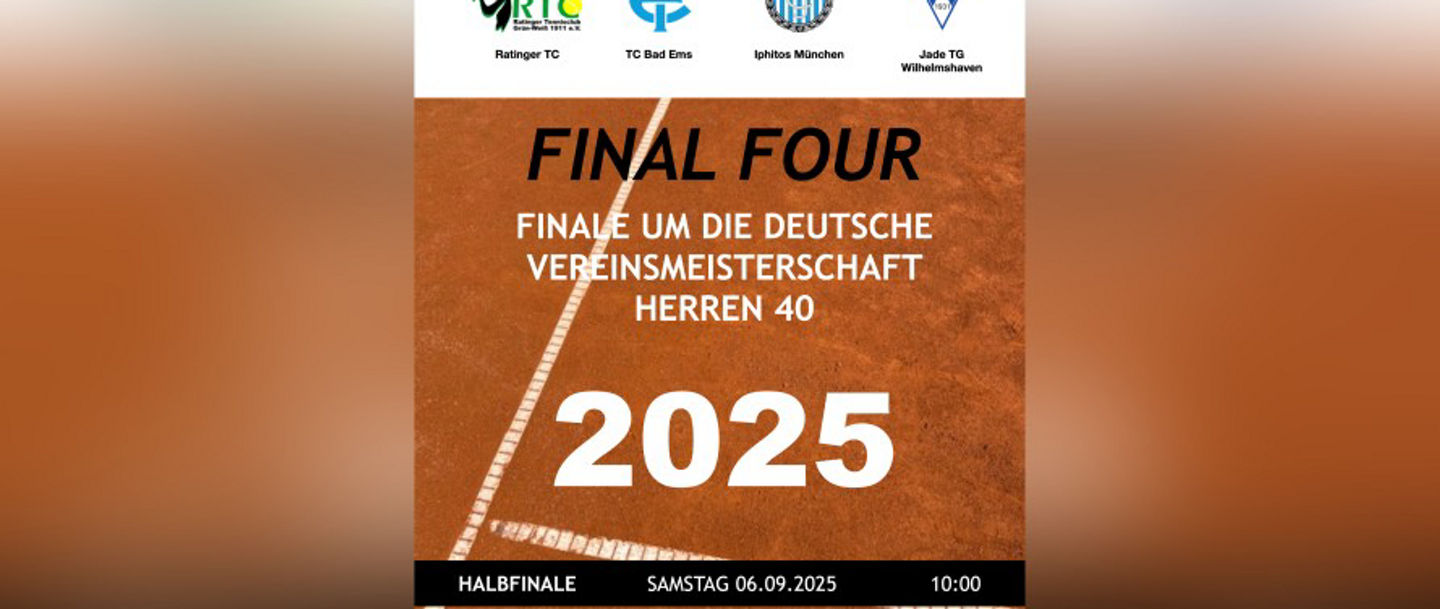 Der Ratinger TC GW hat auf eigener Anlage die Chance, sich den Meistertitel bei den Herren 40 gegen die Konkurrenz des MTTC Iphitos München, Jade TG Wilhelmshaven und des TC BW Bad Ems zu sichern.
